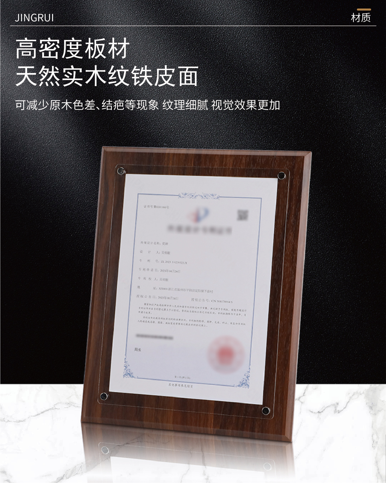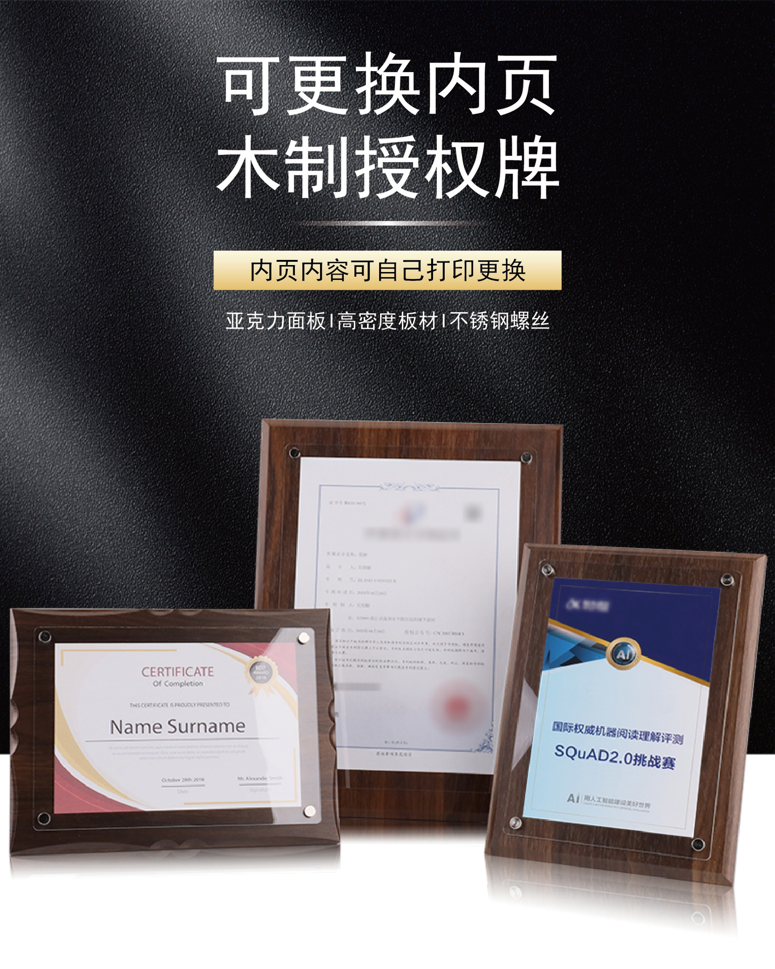 亚克力木托a4证书框定做可替换内芯荣誉奖牌经销商木质授 权牌定制