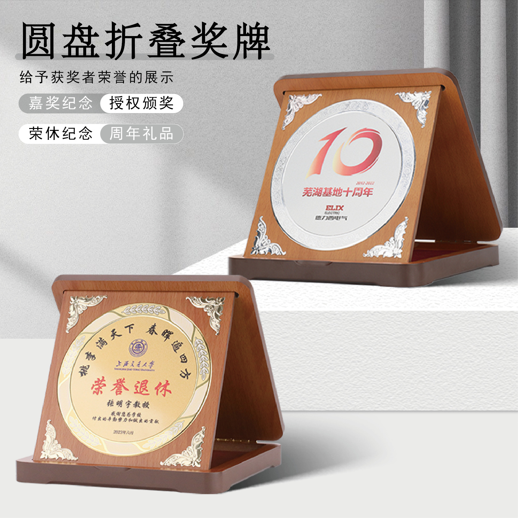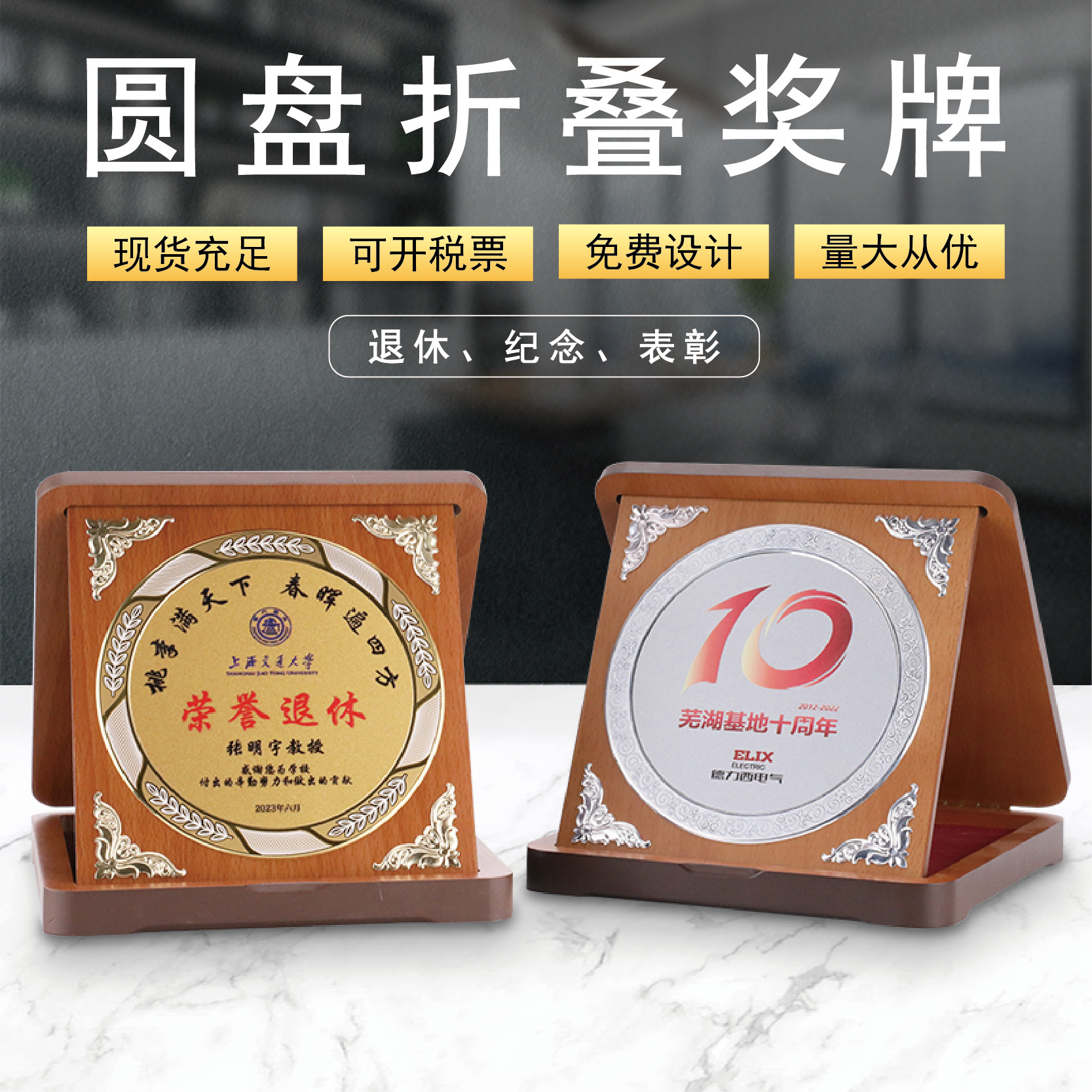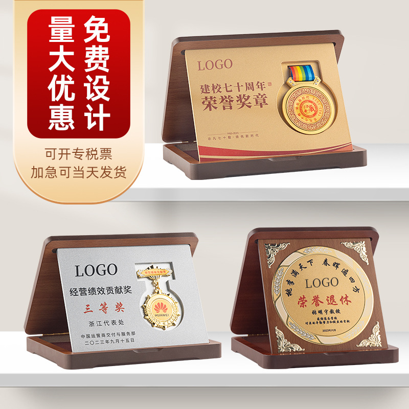 跨境外贸专供可折叠木质奖牌授权牌荣誉牌匾现货空白木托批发定制