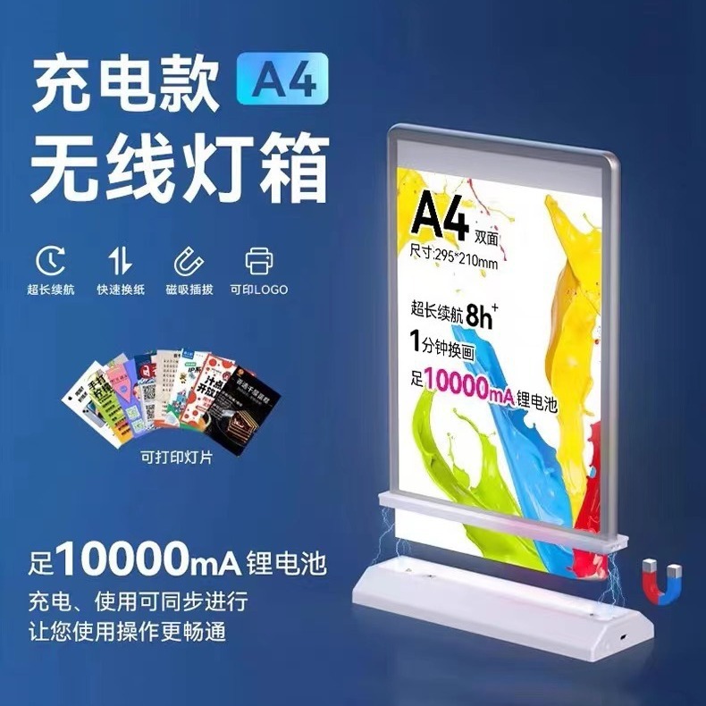 双面可充电式磁吸桌面A5广告灯箱超长续航室内展示吧台灯箱外用