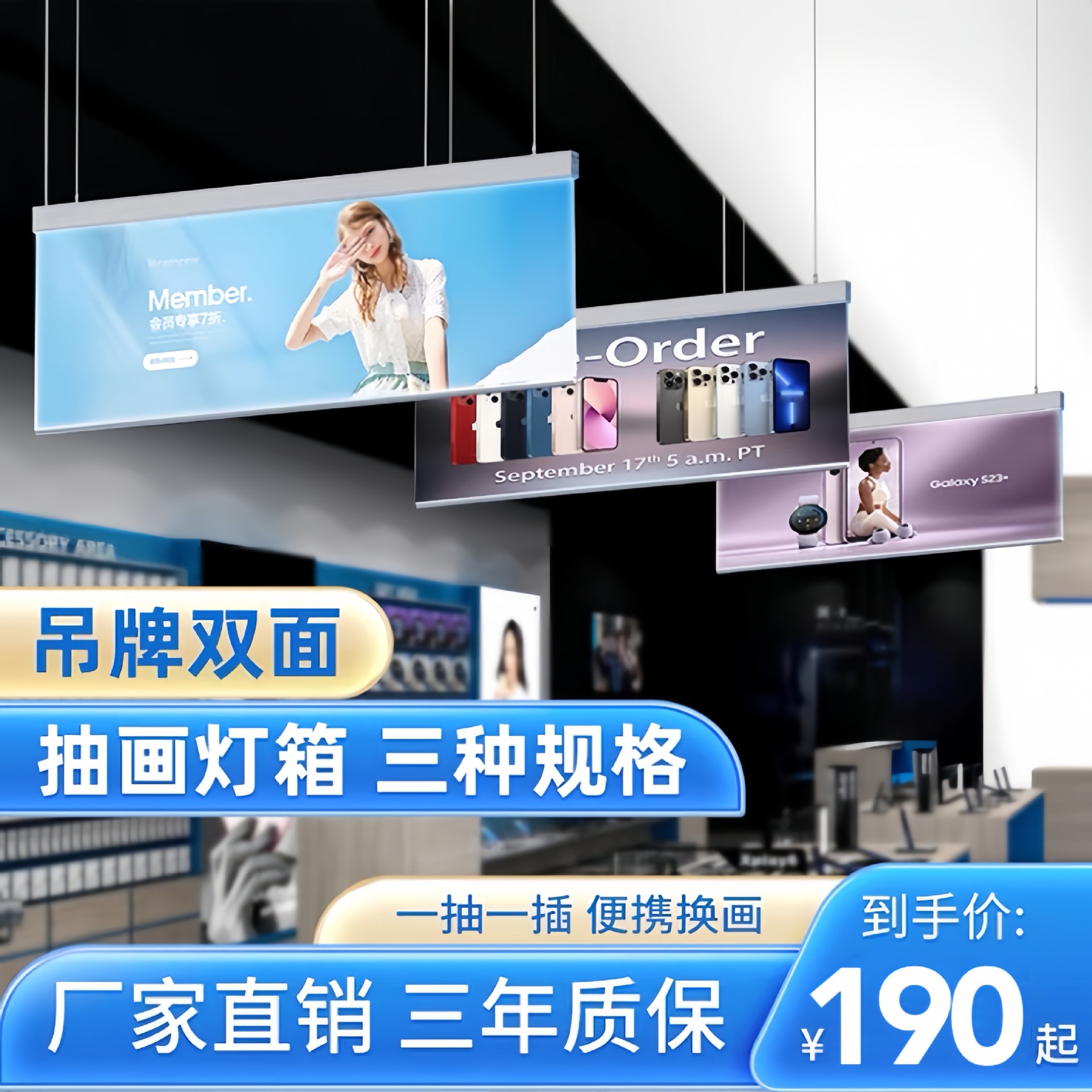 悬挂吊装双面抽画灯箱广告招牌奶茶手机店超薄发光展示超市发光灯