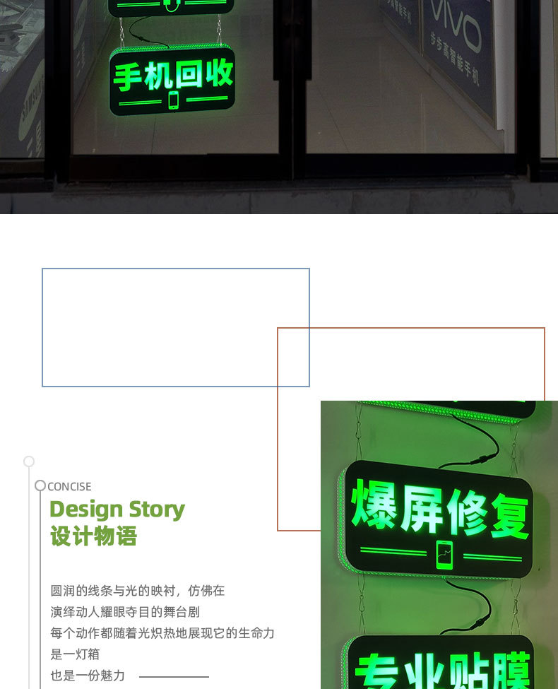 定手机维修广告灯牌闪烁电子灯箱悬挂玻璃门头发光字项目展示牌
