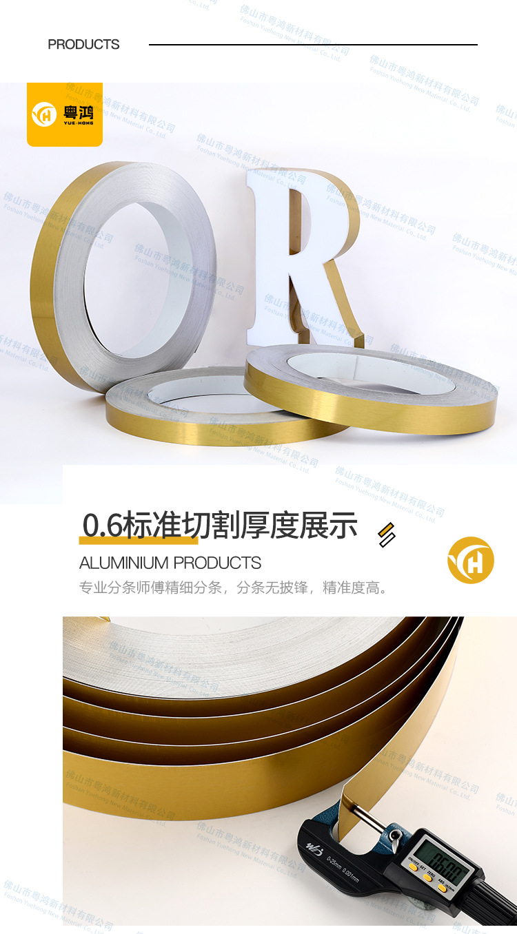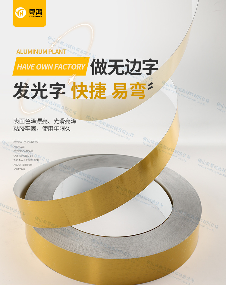 无边字铝边带发光字广告字包边拉丝银金 玫瑰金 黑 围边条铝边条