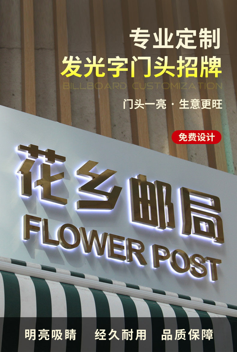 定制LED发光字灯箱户外门头招牌亚克力迷你不锈钢背光字LED广告牌
