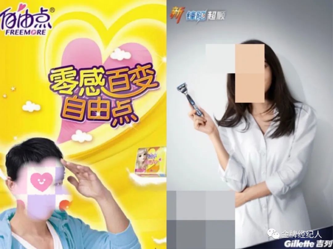 这种情形比较典型的就是男性代言女性卫生用品,女性代言男性用品的情形。