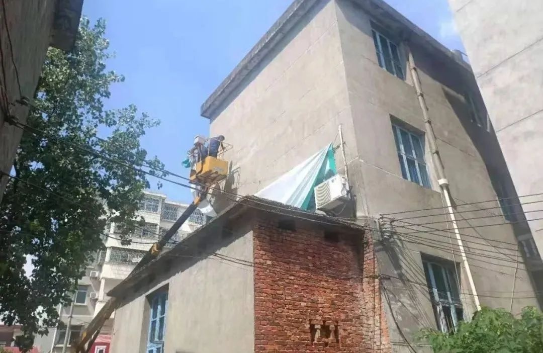 为进一步规范城区户外广告管理,打造靓丽市容街景,近期,县城管局城管大队政务法制股对影响市容观瞻的楼宇喷绘广告进行全面排查清理。由于喷绘布幅广告大多设置在二楼及以上位置,徒手无法清除,城管队员利用高空升降作业车做清除工具,对各主次干道影响市容观瞻的大型楼宇喷绘广告进行清除。