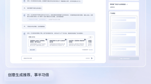 搜索广告方案的创作、编辑时长直接从小时级缩短到分钟级;在成本下降10%的情况下,业务转化量提升23%,整体ROI(投资回报率)提升22.7%。