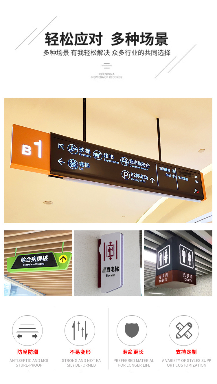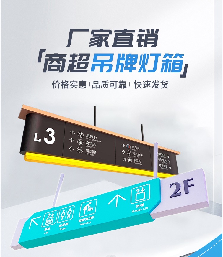 定制商场悬挂式吊牌灯箱导向指示牌停车场医院双面发光字吊顶灯箱